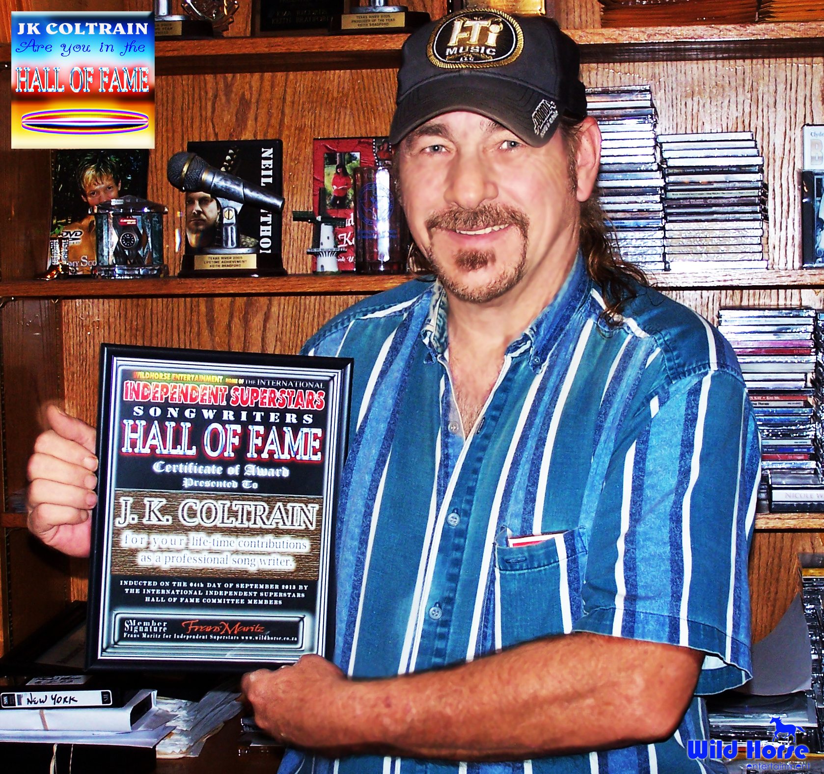 Country Music Songwriter J.K.Coltrain Inducted into Independent Superstars Hall Of fame: Frans Maritz of Wildhorse Entertainment, located in South Africa, signed the official certificate placing J.K.Coltrain into this prestigious organization. J.K.Coltrain has the distinct honor of being inducted into the IDSS Hall of Fame for his life-time contribution to the Music Industry, which he truly has been a huge part of for many years. J.K.Coltrain is seen in the picture below with the award confirming his induction into the Hall Of Fame. J.K.Coltrain expressed his thanks on being inducted into the IDSS Hall Of Fame: ” Frans, Thanks so much for the award and I will post to my FB & Twitter pages. I am thrilled and I will get over to Keiths to have a picture taken having me hand me it, in person” J.K.Coltrain